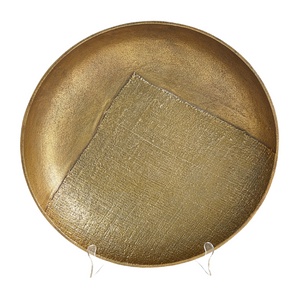 Ce plateau est fabriqué en aluminium moulé au sable avec un motif de toile de jute et une finition plaquée laiton.