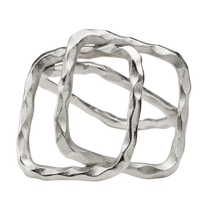 Ajoutez de l'intérêt à n'importe quel espace avec cette sculpture de décoration contemporaine unique. Le design en aluminium argenté comporte trois carrés texturés disposés astucieusement pour créer une sculpture moderne.